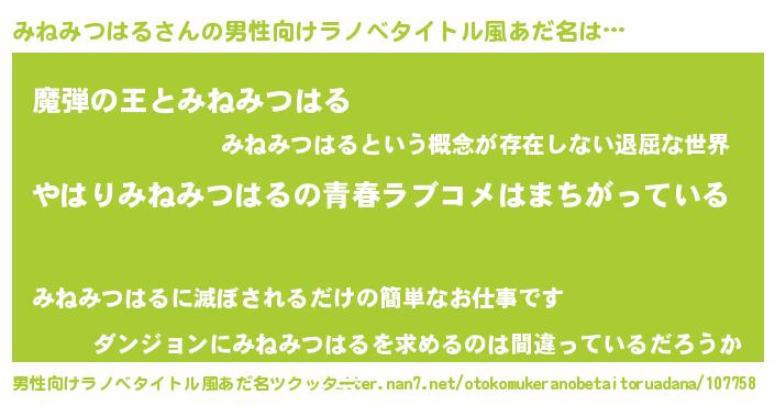 | 女子向けラノベタイトル風あだ名 | 『みねみつはるの雑貨屋さん』 |