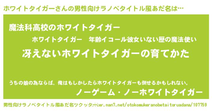 | ヒーロー風カッコイイあだ名 | 『最強戦士ホワイトタイガー』 |