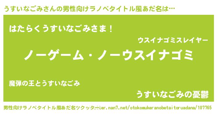 | 女子向けラノベタイトル風あだ名 | 『死神うすいなごみの再婚』 |