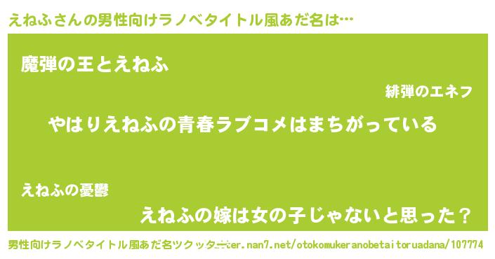 | 女子向けラノベタイトル風あだ名 | 『えねふ伯爵の花嫁』 |