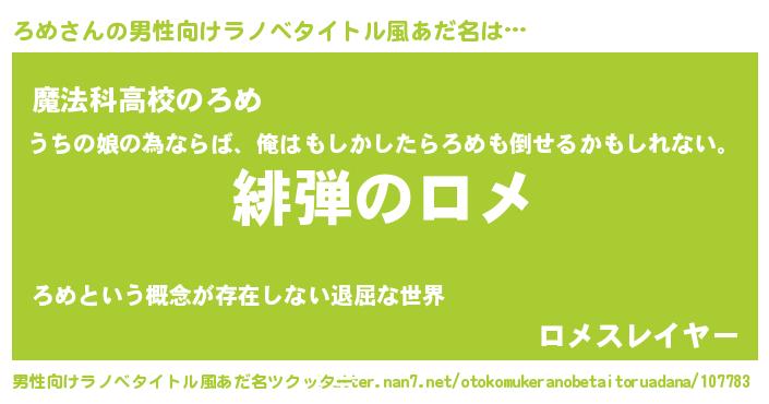 | 意味不明あだ名 | 『自称ろめ』『たけのこ科ろめ属』 |