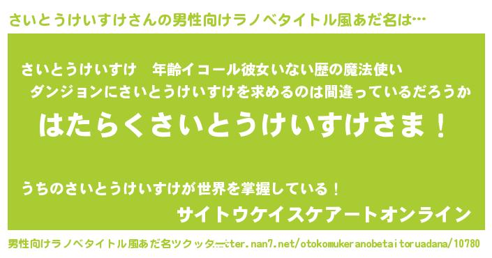| ヒーロー風カッコイイあだ名 | 『スーパーサイトウケイスケ』 |