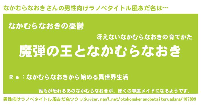 | 女子向けラノベタイトル風あだ名 | 『なかむらなおきが死なない童話 林檎のなかむらなおきの診療簿』 |