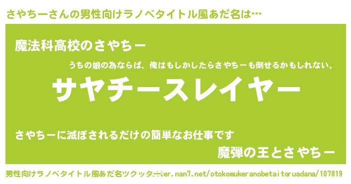 | 伝説のあだ名 | 『秘められし忍者さやちー』 |