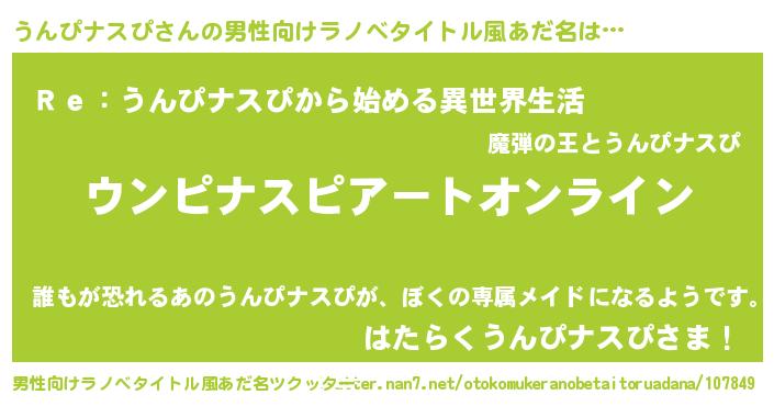 | ヒーロー風カッコイイあだ名 | 『スーパーウンピナスピ』『仮面ウンダー』 |