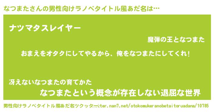 | 女子向けラノベタイトル風あだ名 | 『なつまた夫妻のなれそめ』 |