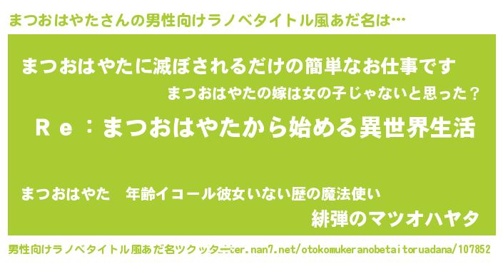 | 女子向けラノベタイトル風あだ名 | 『まつおはやたストレイドッグス』 |