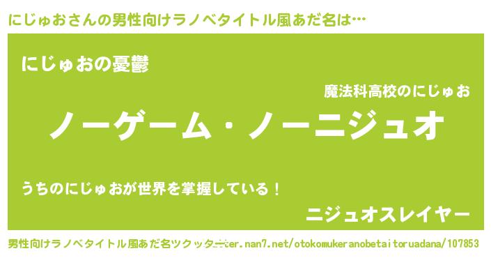 | 女子向けラノベタイトル風あだ名 | 『死神にじゅおの再婚』 |