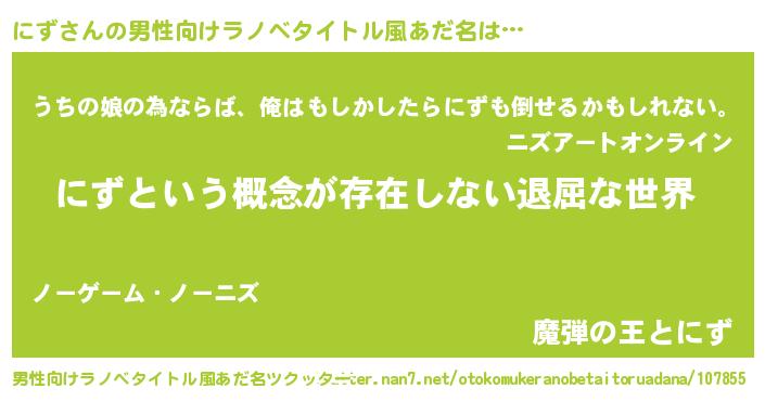 | 胡散臭い通販商品みたいなあだ名 | 『絶対に幸福をもたらす水素水…その名も「にず」』 |