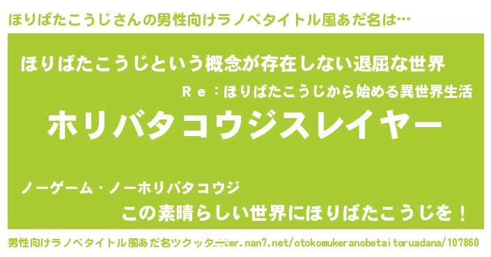 | 胡散臭い通販商品みたいなあだ名 | 『絶対に幸福をもたらす水素水…その名も「ほりばたこうじ」』 |