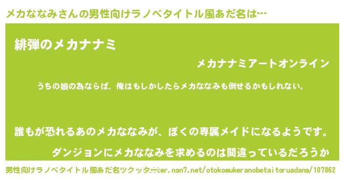 | 女子向けラノベタイトル風あだ名 | 『メカななみ伯爵の花嫁』 |