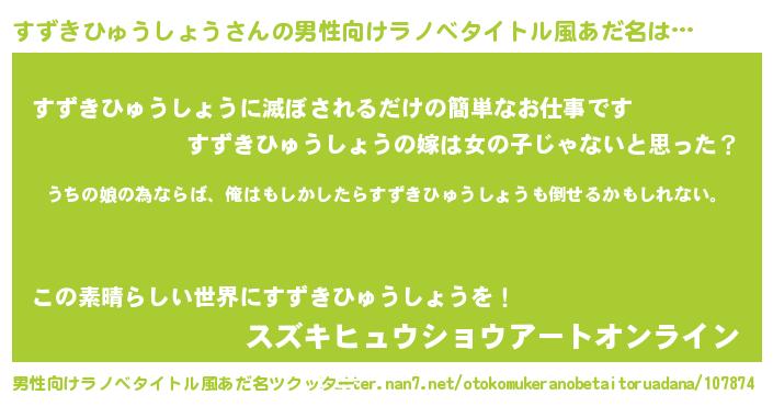 | 意味不明あだ名 | 『すずきひゅうしょうフォーエバー』 |