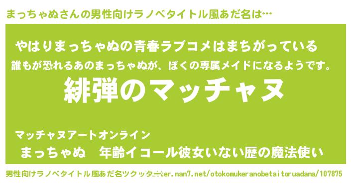 | 胡散臭い通販商品みたいなあだ名 | 『幸せが訪れる高級そうな絵画…その名も「まっちゃぬ」』 |