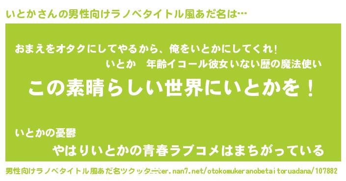 | 胡散臭い通販商品みたいなあだ名 | 『あなたにだけ特別に提供する世界で10本だけ現存している希少なブランデー…その名も「いとか」』 |