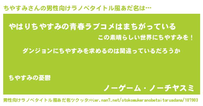 | 女子向けラノベタイトル風あだ名 | 『ちやすみは平凡を望む』 |