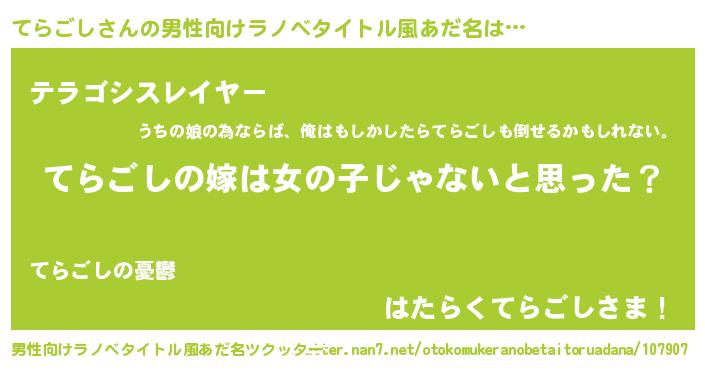 | 女子向けラノベタイトル風あだ名 | 『てらごしの卵を拾いまして』 |