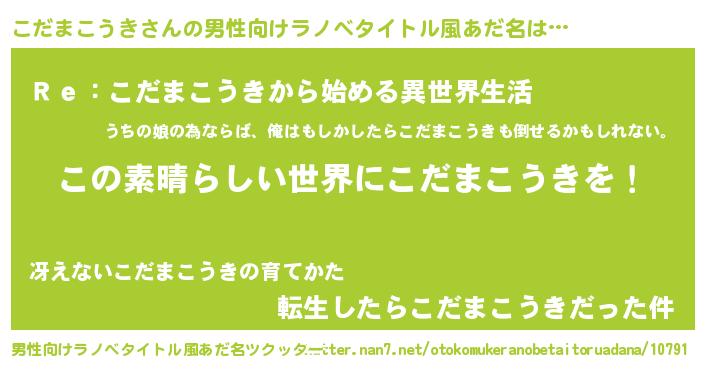 | 胡散臭い通販商品みたいなあだ名 | 『あなたにだけ特別に提供する限定10本のレアな日本酒…その名も「こだまこうき」』 |