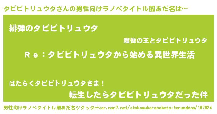 | 女子向けラノベタイトル風あだ名 | 『闇のタビビトリュウタ』 |