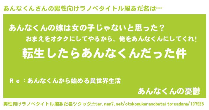 | 女子向けラノベタイトル風あだ名 | 『あんなくんの玉の輿計画!』 |