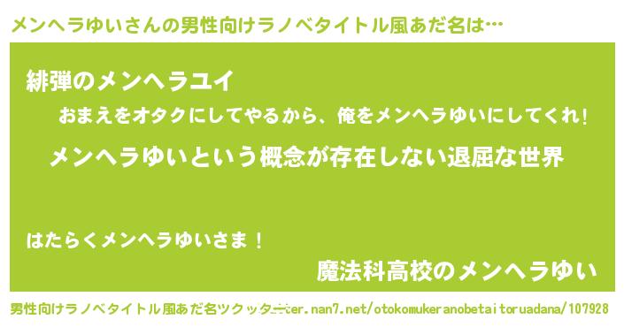 | 女子向けラノベタイトル風あだ名 | 『異世界で失敗しない100のメンヘラゆい』 |