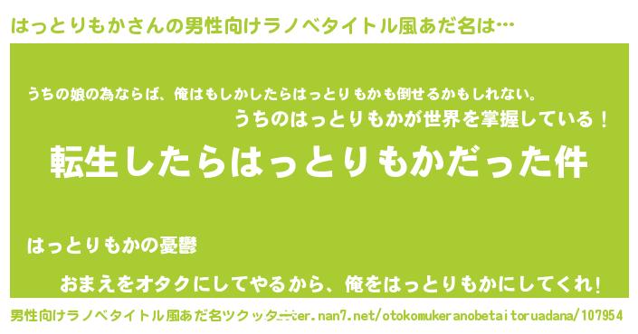 | 女子向けラノベタイトル風あだ名 | 『はっとりもかの玉の輿計画!』 |