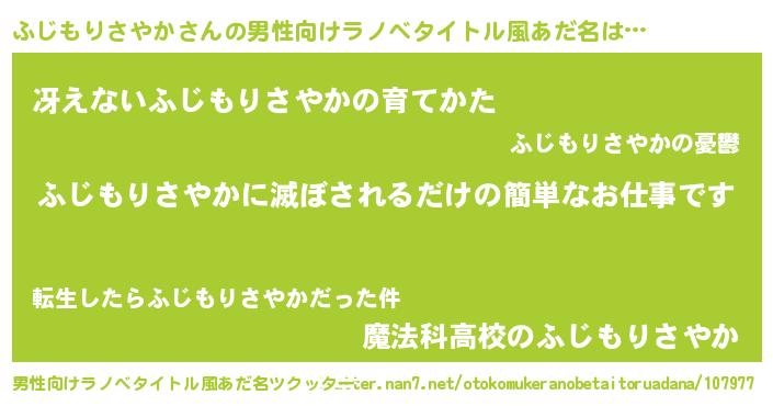 | 意味不明あだ名 | 『自称ふじもりさやか』 |
