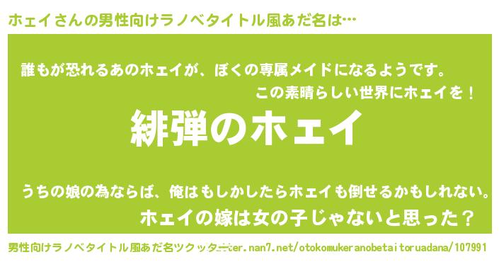 | 女子向けラノベタイトル風あだ名 | 『シンデレラホェイ家の靴箱館』 |