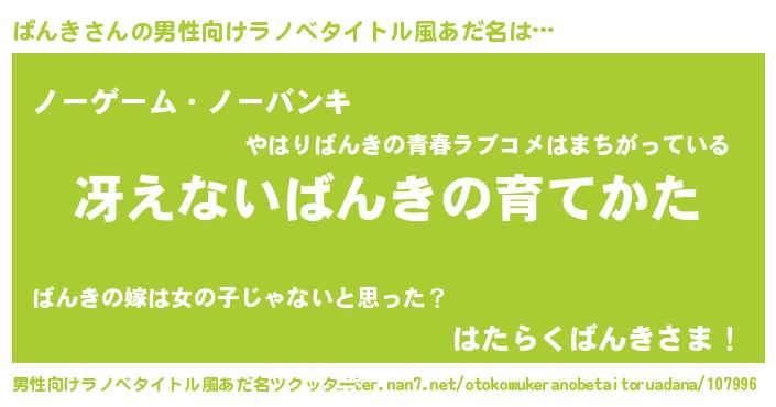 | ヘコむあだ名 | 『なまこ酢』『ばん太郎』『ばんもー』 |