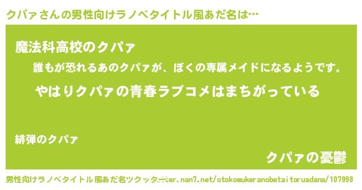 | 意味不明あだ名 | 『クパァフォーエバー』『自称クパァ』 |