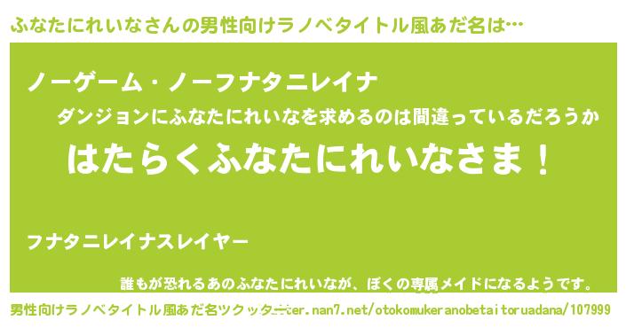 | ヘコむあだ名 | 『ふなたにれいな(苦笑)』『ふなっぺ』 |