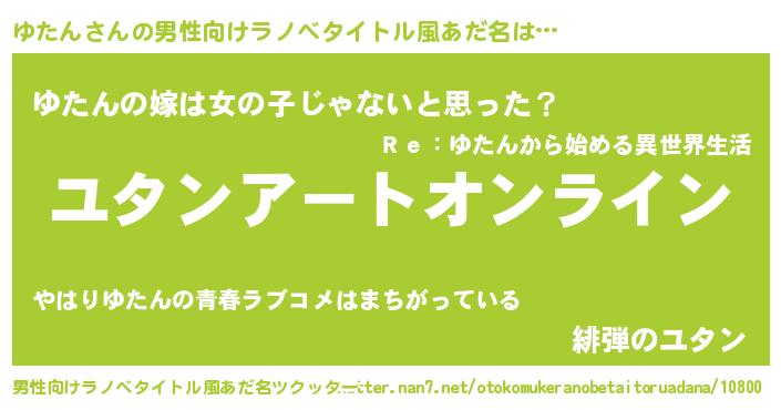 | 胡散臭い通販商品みたいなあだ名 | 『億万長者になれる霊験あらたかなお札…その名も「ゆたん」』 |