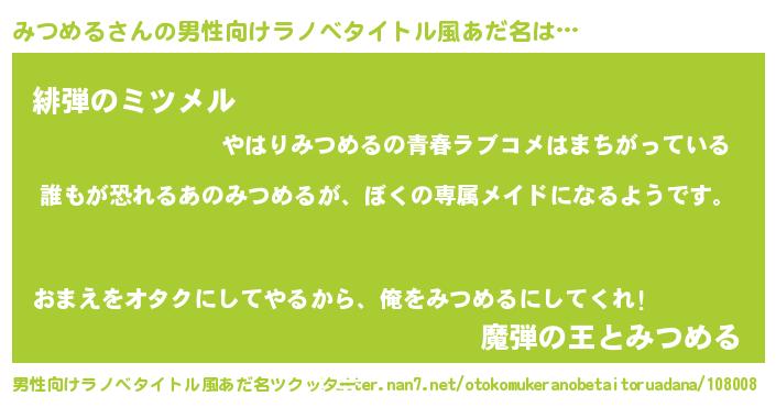 | 意味不明あだ名 | 『永久保存みつめる』『自称みつめる』 |
