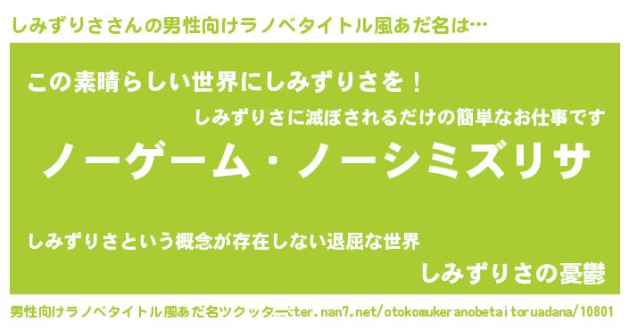 | 女子向けラノベタイトル風あだ名 | 『死神しみずりさの再婚』 |