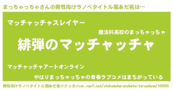 | 胡散臭い通販商品みたいなあだ名 | 『幸せが訪れる高級そうな壺…その名も「まっちゃっちゃ」』 |