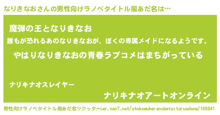 | 女子向けラノベタイトル風あだ名 | 『なりきなおの雑貨屋さん』 |