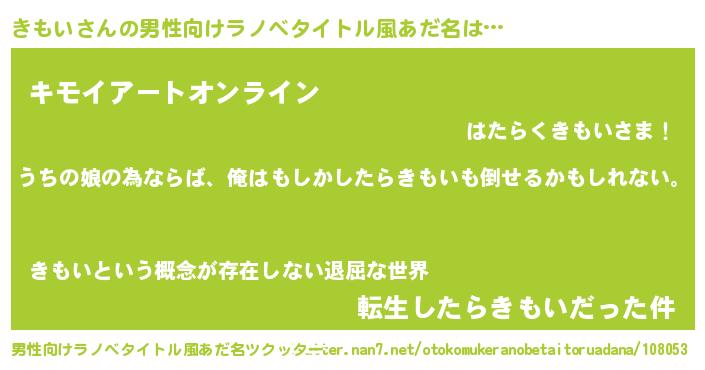 | 胡散臭い通販商品みたいなあだ名 | 『運命の人と巡り会える高級そうな絵画…その名も「きもい」』 |