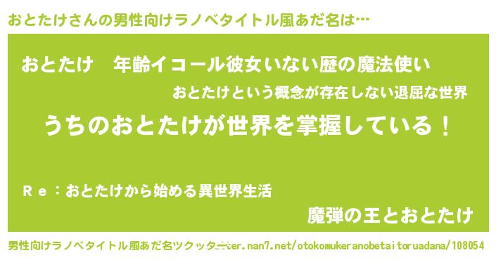 | 胡散臭い通販商品みたいなあだ名 | 『あなたにだけ特別に提供する限定10本のレアな日本酒…その名も「おとたけ」』 |