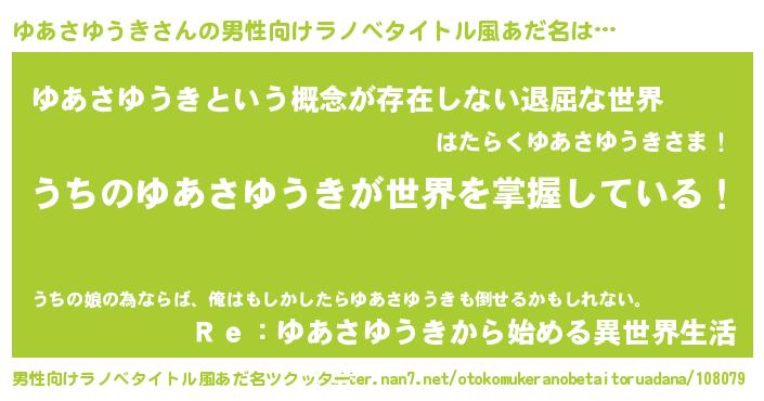 | 欧米人風あだ名 | 『ゆあさゆうき・ステッグマイヤー』 |