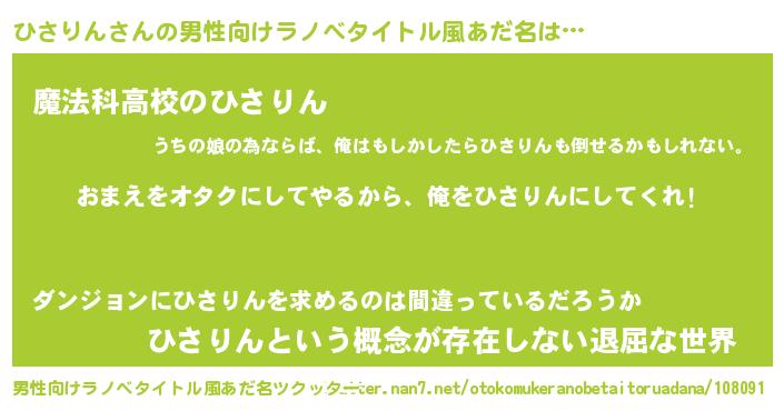 | 胡散臭い通販商品みたいなあだ名 | 『100人中100人が認めたマグネット磁石…その名も「ひさりん」』 |