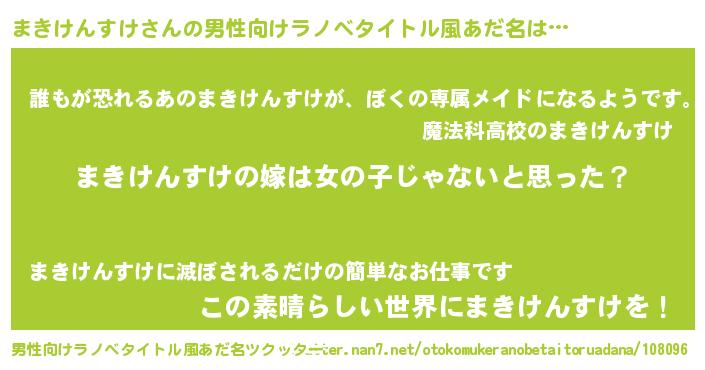 | 女子向けラノベタイトル風あだ名 | 『まきけんすけ様がみてる』 |