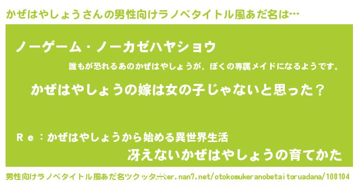| 女子向けラノベタイトル風あだ名 | 『かぜはやしょう様がみてる』 |