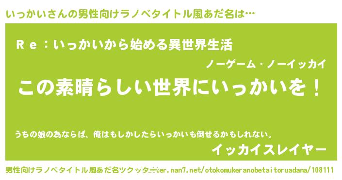 | 意味不明あだ名 | 『住所不定無職いっかい(50歳)』 |