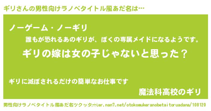 | ヒーロー風カッコイイあだ名 | 『天弓騎士ギリ』『慈愛の使者ギリ』 |