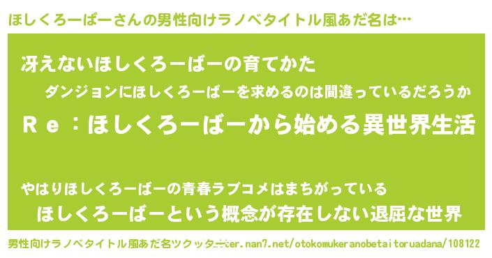 | 胡散臭い通販商品みたいなあだ名 | 『芸能人もオススメするアガリクス…その名も「ほしくろーばー」』 |