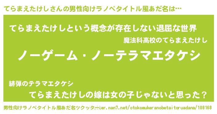 | ヒーロー風カッコイイあだ名 | 『慈愛の使者てらまえたけし』 |