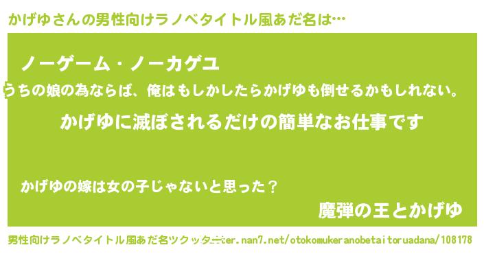 | ヒーロー風カッコイイあだ名 | 『慈愛の使者かげゆ』『仮面カゲダー』 |