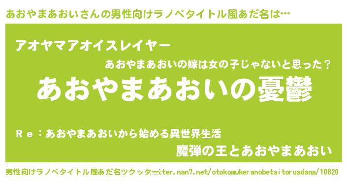 | 胡散臭い通販商品みたいなあだ名 | 『必ず成功する霊験あらたかなお札…その名も「あおやまあおい」』 |