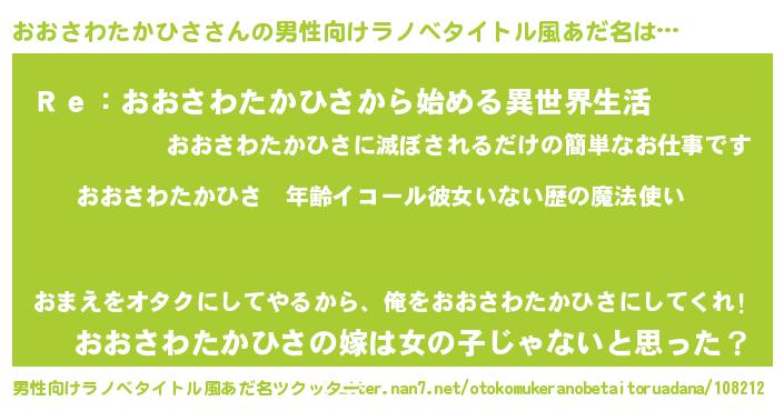 | ヘコむあだ名 | 『おおっちょ』『おおさわたかひさ(笑)』 |