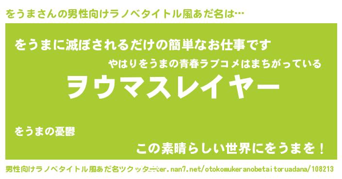 | ヒーロー風カッコイイあだ名 | 『仮面ヲウダー』『ウルトラをうまマン』 |