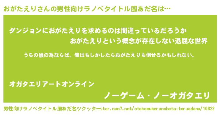 おがたえりさんの男性向けラノベタイトル風あだ名をツクッター!